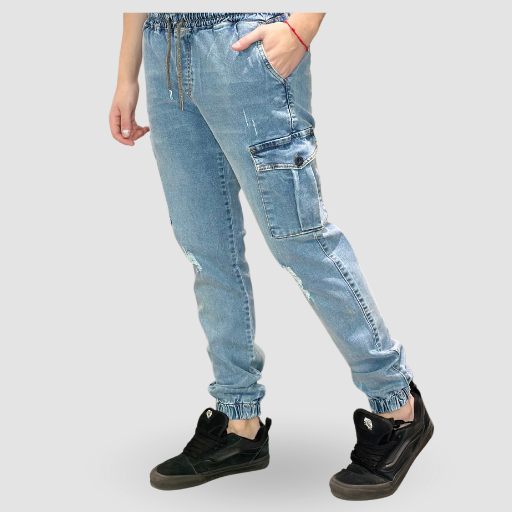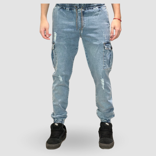 jogger cargo jeans elastizado con rotura